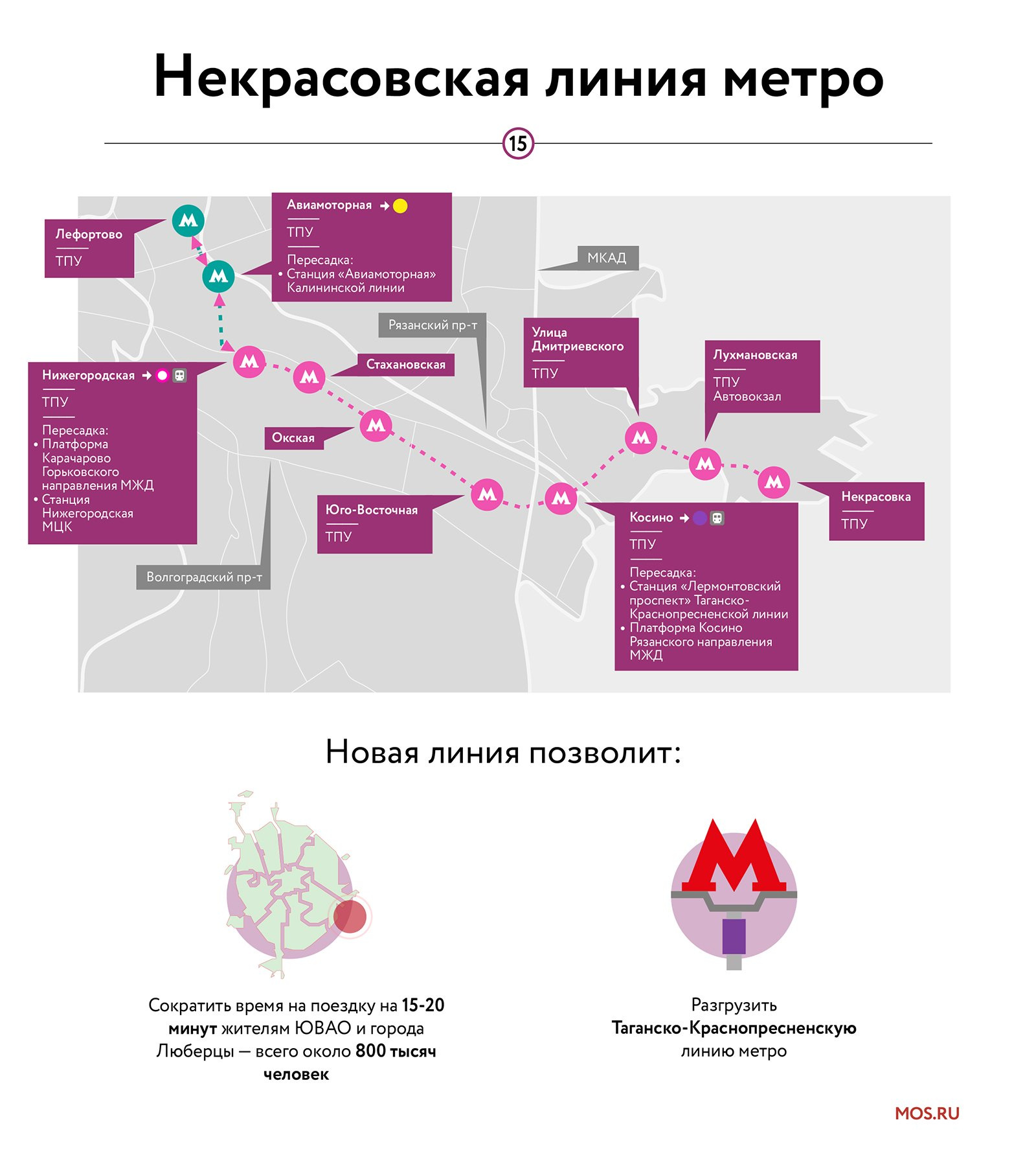 До конца 1019 года планируется запустить и второй участок Некрасовской линии от станции «Нижегородская» до станции «Юго-Восточная».